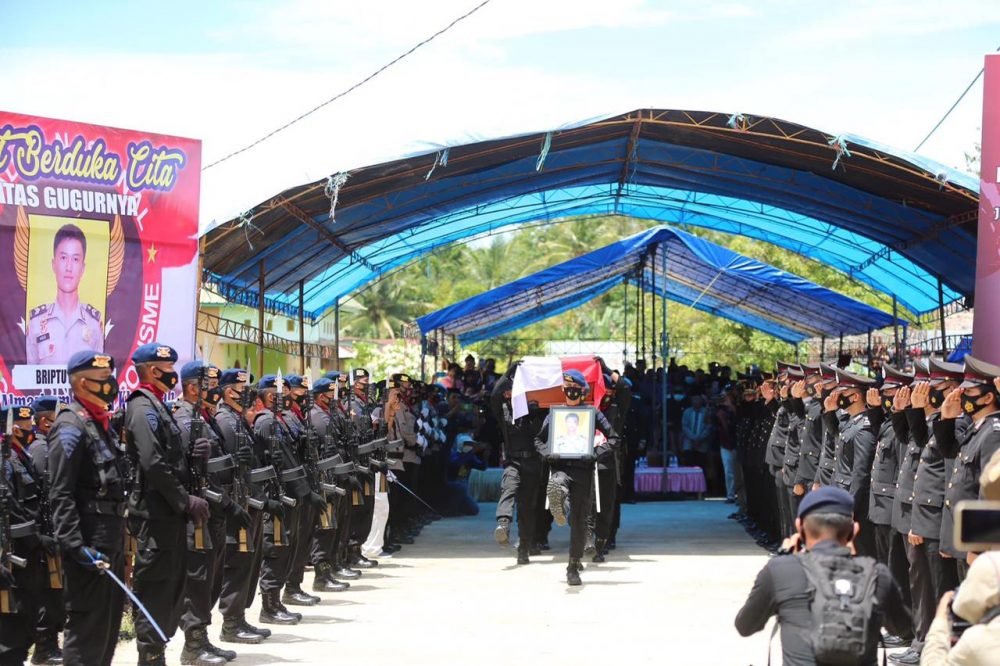 Upacara pelepasan Brigadir Herlis yang tewas tertembak. Foto: Istimewa. (4/3/2021).