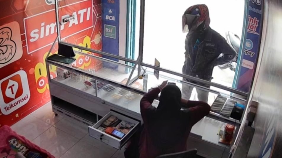 Pelaku saat melancarkan aksinya di sebuah jasa transfer uang di Jalan Pattimura, Kelurahan Puuwatu, Kecamatan Puuwatu, Kota Kendari. Foto: Istimewa. (20/12/2025).