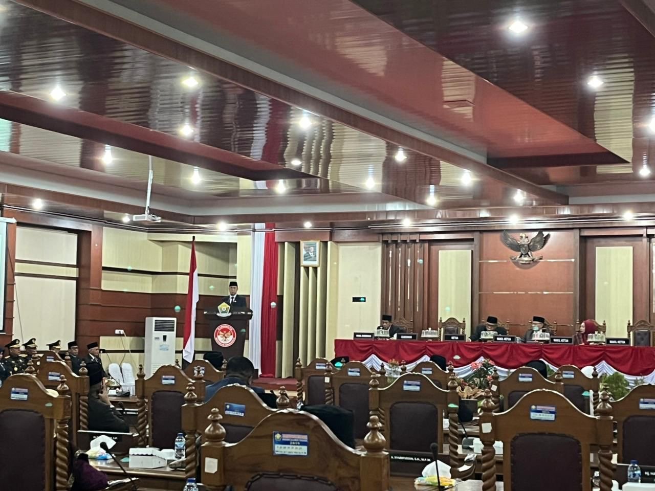 Gubernur Sultra, Andi Sumangerukka saat pidato di hadapan DPRD Sultra. Foto: Hasmin Ladiga/Kendariinfo. (15/8/2025).