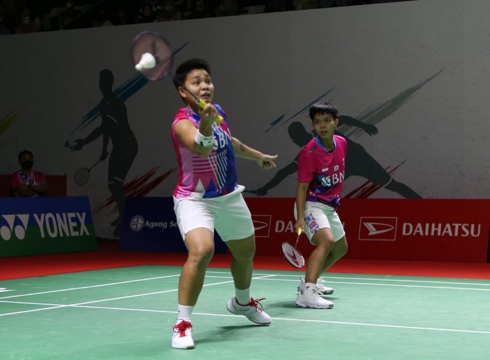 Nasional – Pertandingan perempat final yang mempertemukan ganda putri Indonesia, Apriyani Rahayu/Siti Fadia Silva Ramadhanti melawan ganda putri Korea Selatan (Korsel), Lee So He/Shin Seung Chan sukses dimenangkan oleh ganda putri Indonesia dalam pertandingan 3 set, 15-21, 21-16, 21-16, Jumat (10/6/2022).