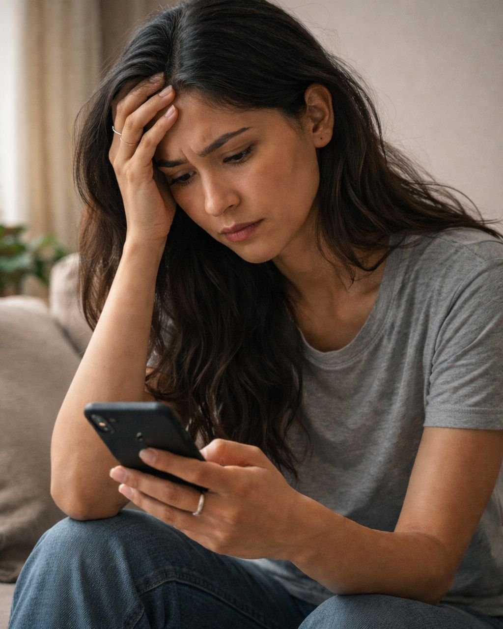 Ilustrasi seorang wanita yang memegang handphone dikirimkan video tak senonoh. Foto: Ai/ChatGPT.