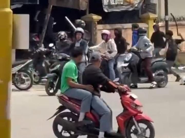 Dari video yang diterima, sekelompok pelajar melakukan penyerangan dengan membawa kayu dan melempar batu di sebuah bengkel di lokasi itu. Usai beraksi, mereka tancap gas meninggalkan lokasi itu. Sejumlah orang pun keluar dari bengkel itu.