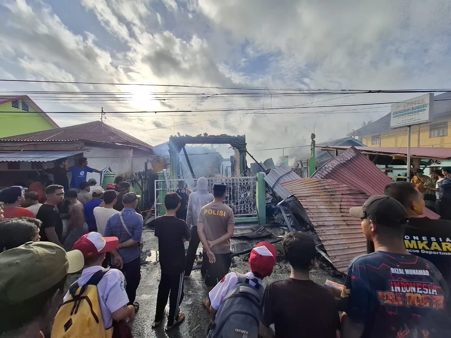 Kondisi satu unit rumah yang di dalamnya beroperasi sebuah apotek dan berjualan bensin pasca-kebakaran di Jalan Dayanu Ikhsanuddin, Kelurahan Mandati III, Kecamatan Wangiwangi Selatan, Kabupaten Wakatobi. Foto: Istimewa. (12/1/2026).
