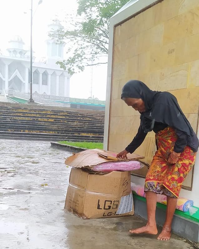 Dalam postingan yang diunggah Sabtu (5/12/2020) lalu itu, nampak nenek Sophia ingin tidur di depan pintu masuk Masjid. Kurang lebih 20 hari dirinya menjadikan pintu masuk Masjid sebagai tempat tinggal.