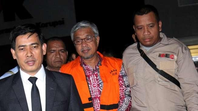 Eks Gubernur Sulawesi Tenggara, Nur Alam (tengah). Foto: Oke Atmaja/Suara.com.