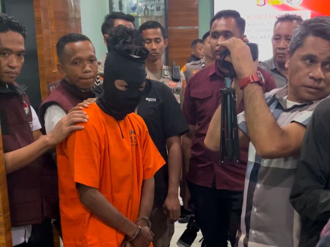 Kurir bernama Dodi saat digiring untuk ditampilkan pada konferensi pers pengungkapan sabu-sabu 6,5 kilogram di Mapolda Sultra. Foto: Kendariinfo. (3/12/2025).