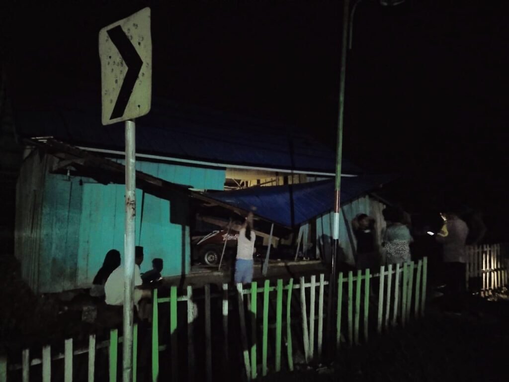 Konawe Utara – Kecelakaan lalu lintas tunggal terjadi di Jalan Poros Trans Sulawesi, Desa Tongauna, Kecamatan Sawa, Kabupaten Konawe Utara (Konut), Sulawesi Tenggara (Sultra), Sabtu (20/12/2025) sekitar pukul 03.00 Wita. Sebuah mobil pick up bermuatan alat-alat mobil menabrak rumah warga setelah pengemudinya kehilangan kendali di tikungan jalan.