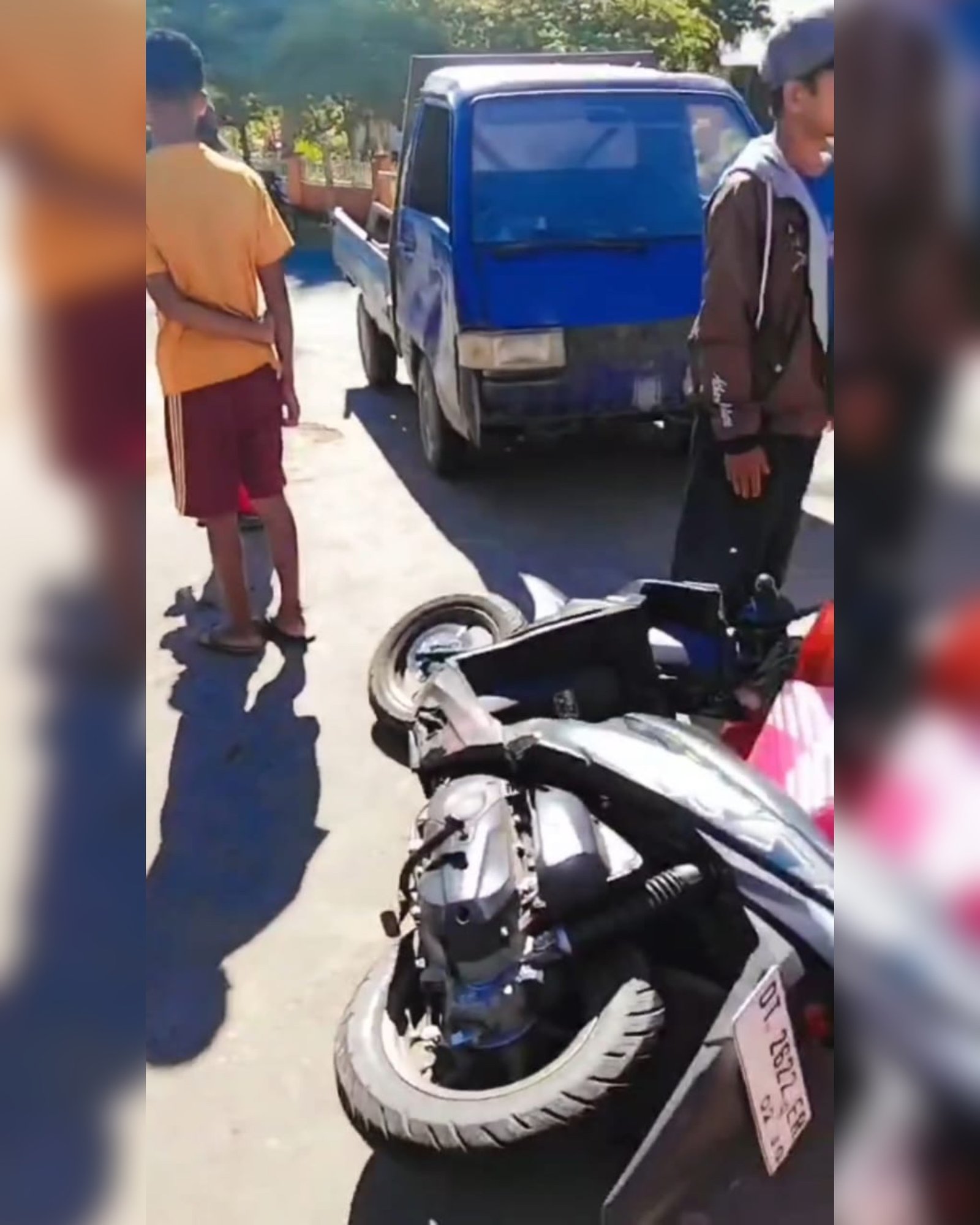 Renaldo menjelaskan kecelakaan melibatkan sepeda motor Honda Beat bernomor polisi DT 2622 ER warna hitam yang dikendarai wanita berinisial WS (49). Sementara mobil Suzuki Carry tanpa nomor kendaraan dikemudikan LA (30). Kedua kendaraan awalnya bergerak dari arah yang sama.