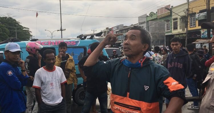“Saya setuju sodara, tapi kalau kau halangi masyarakat di sekitaran sini salah. Saya ini bekas mahasiswa, tukang demo. Mengerti tidak? Saya dukung ade-ade. Tapi ingat bukan kaya begini, fasilitas umum jangan diganggu. Ini jalan fasilitas umum,” ucapnya sambil menunjuk-nunjuk massa yang berdiri di atas mobil truk.