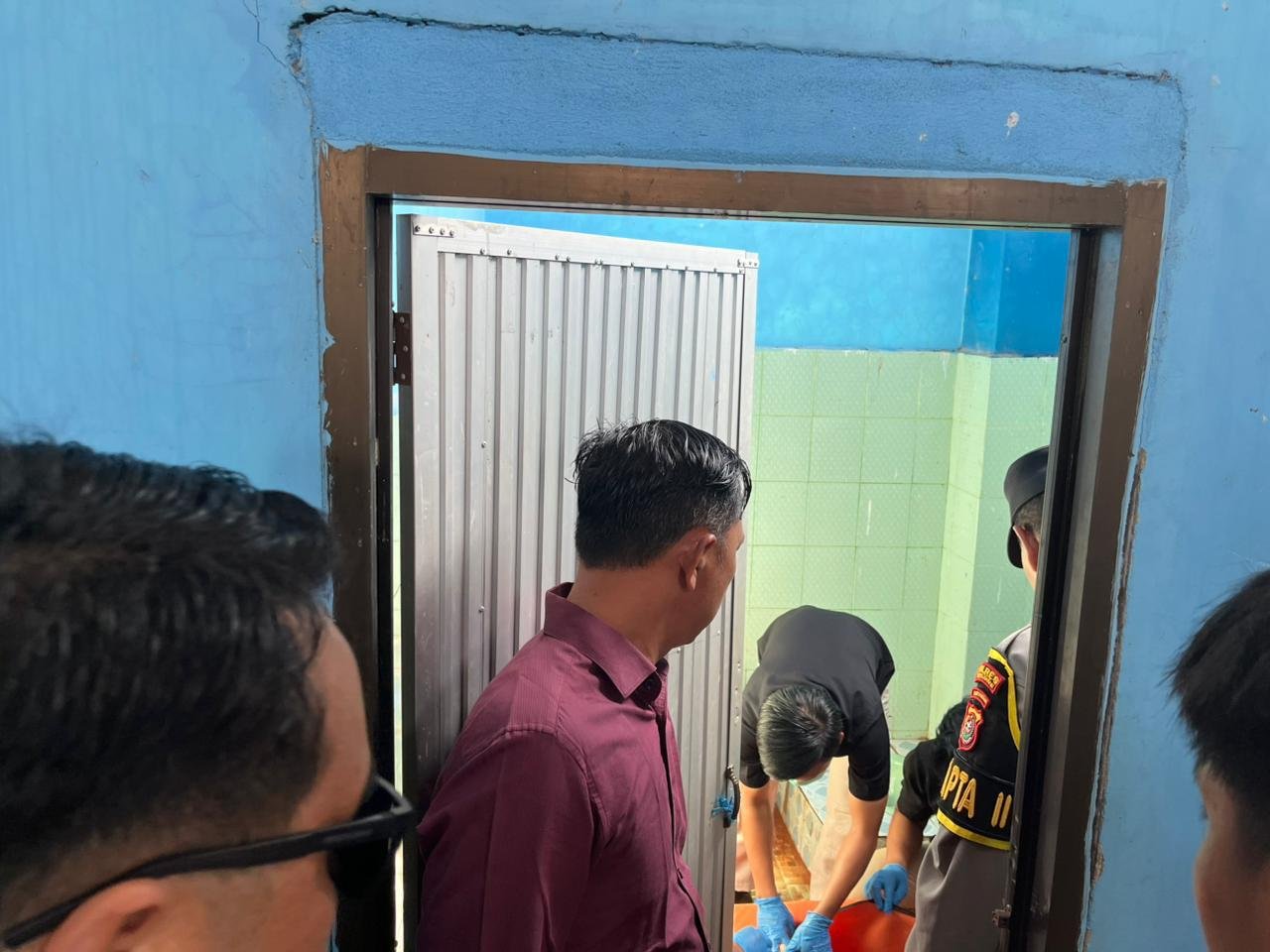 “Saat saya buka pintu WC, korban sudah terlentang tanpa pakaian di atas kloset. Saya langsung memanggil warga,” kata S, saksi yang pertama kali menemukan korban.