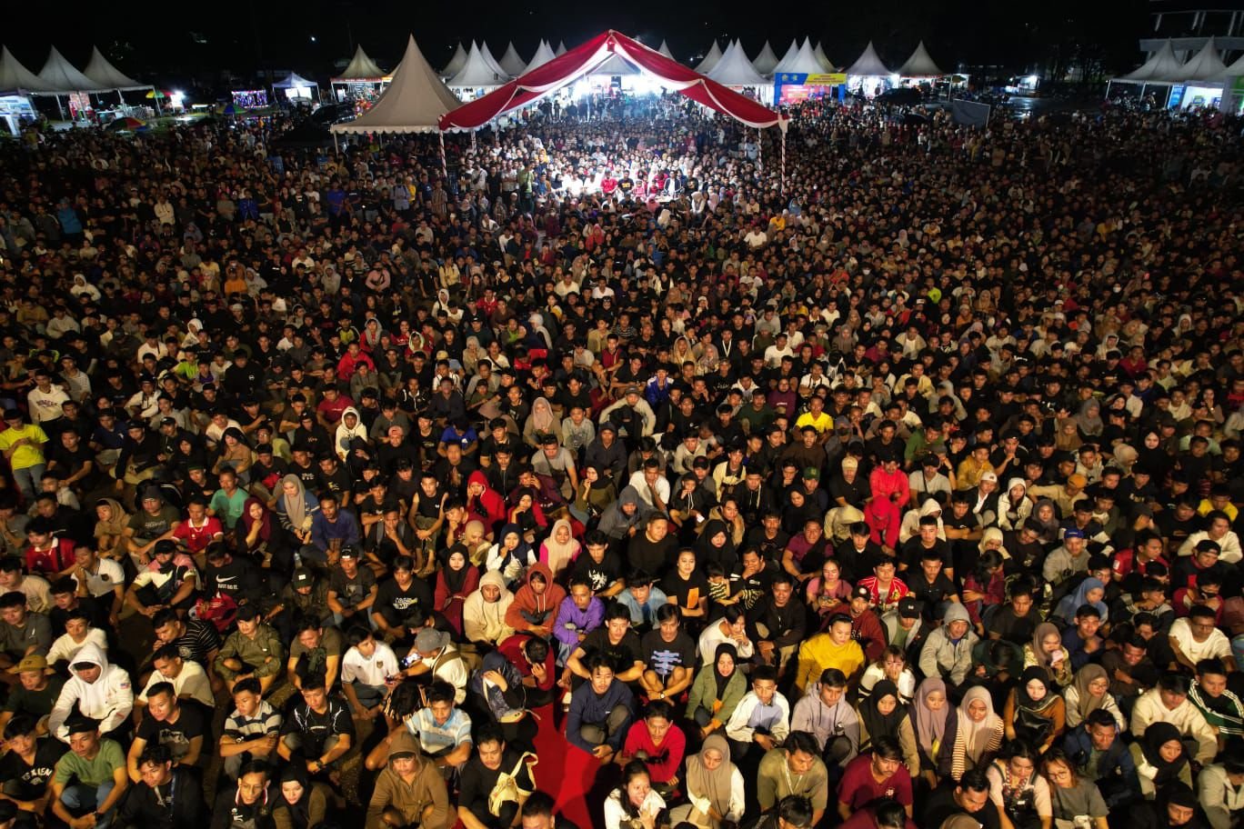 Ribuan orang memadati kawasan nonton bareng (nobar) di Eks MTQ Kota Kendari, Sulawesi Tenggara (Sultra). Foto: Dok. Dispar Sultra. (29/4/2024).
