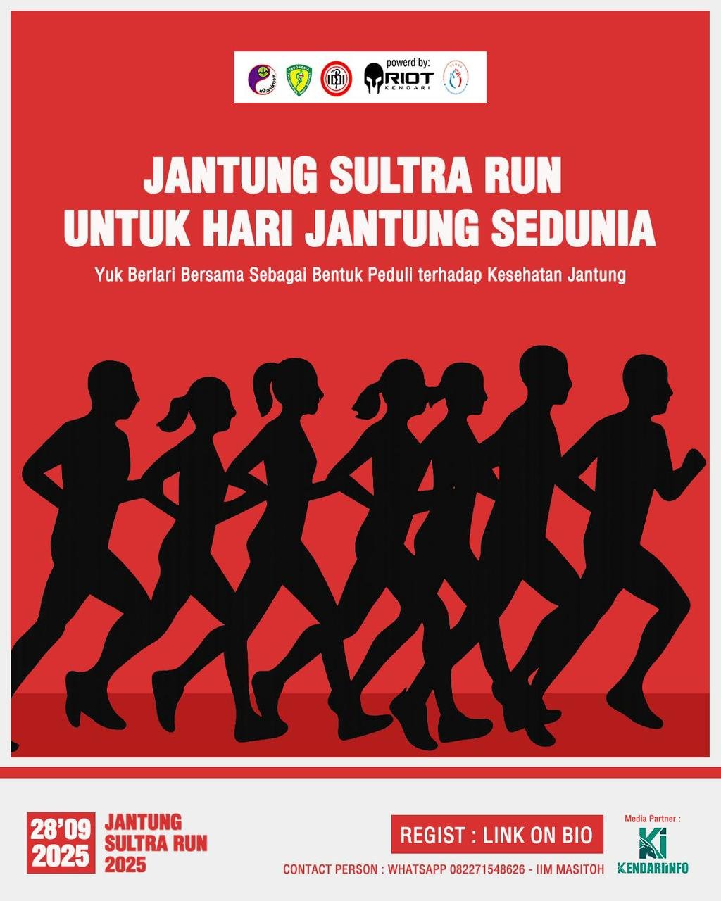 Pendaftaran Jantung Sultra Run 2025 telah dibuka hingga 14 September 2025 melalui tautan di akun Instagram @jantungsultrarun atau dengan menghubungi panitia di nomor 0822-7154-8626 (Lim Masitoh).