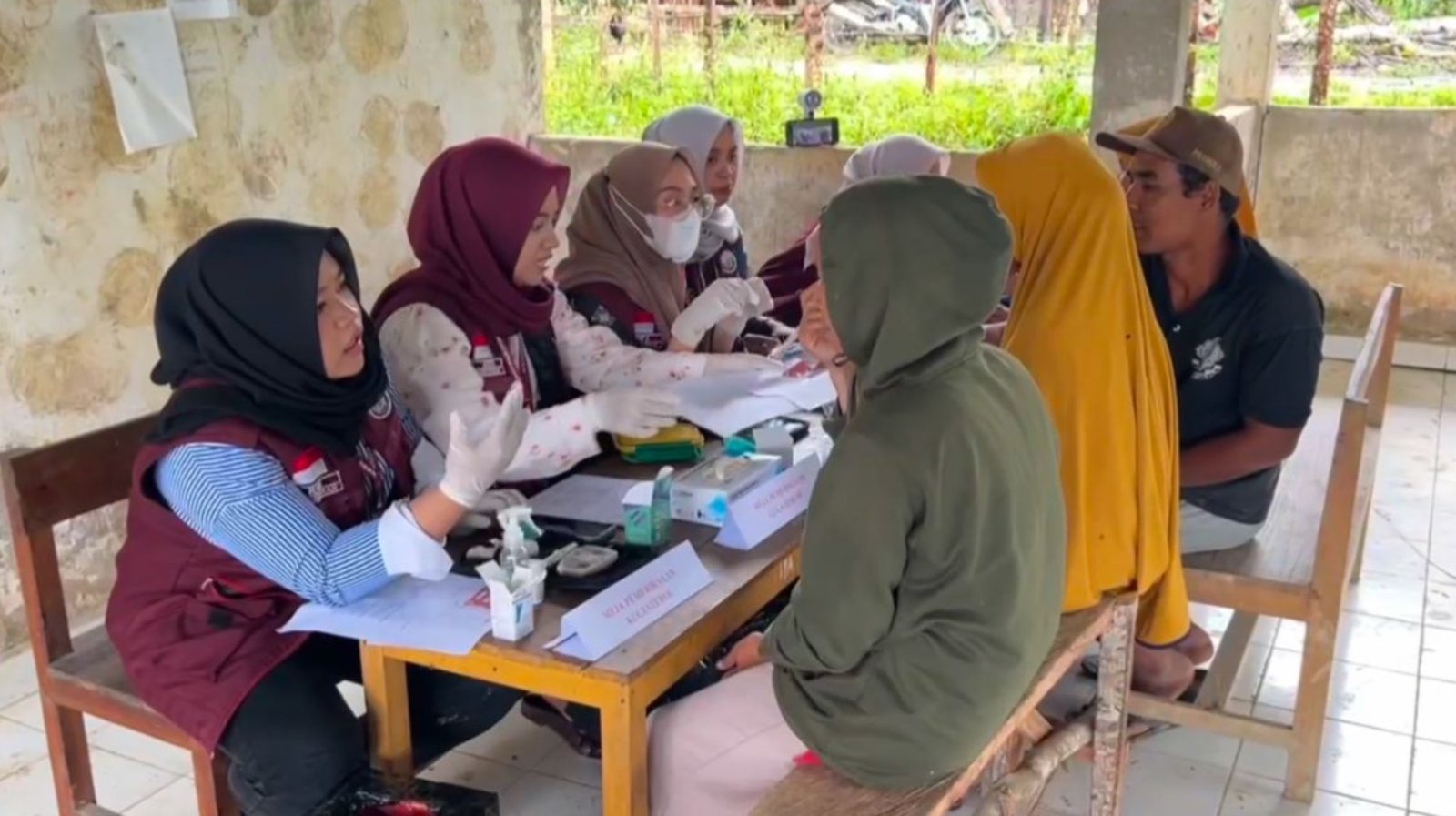 Kegiatan pemeriksaan kesehatan gratis murni dilaksanakan tanpa kerja sama dengan pihak lain, melainkan inisiatif mandiri mahasiswa sebagai bentuk pengabdian kepada masyarakat di wilayah terpencil.