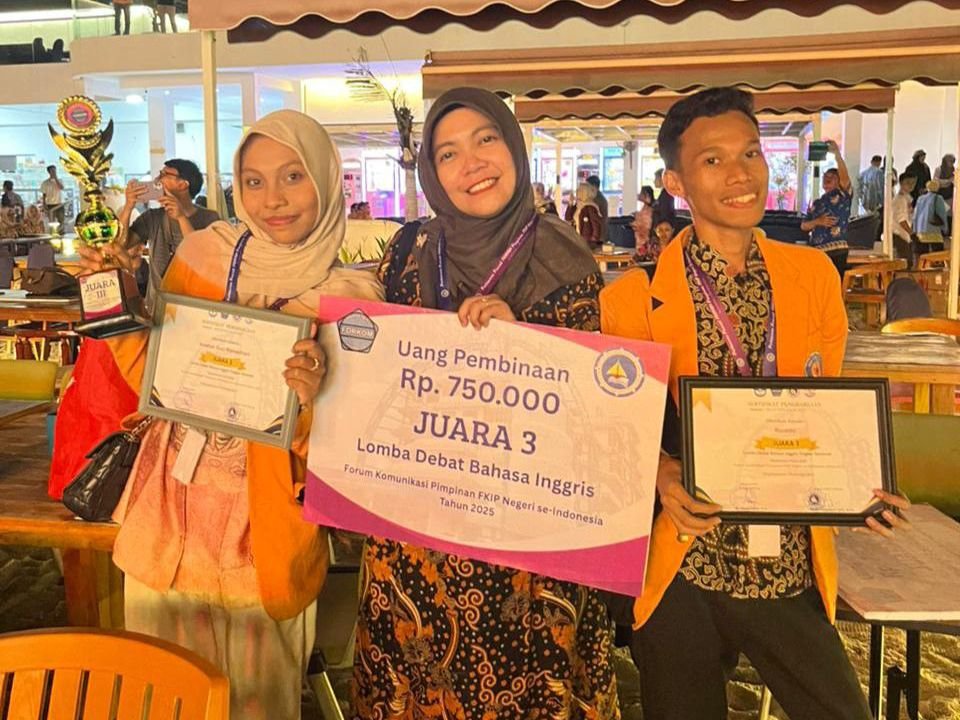 “Alhamdulillah kami berhasil meraih juara 3 nasional di Lomba Debat Bahasa Inggris, salah satu cabang lomba di FORKOM FKIP Negeri 2025. Tahun ini diselenggarakan di UMRAH, dan tiap tahun universitas tuan rumahnya berbeda,” ujar Rizaldo saat diwawancarai Kendariinfo, Kamis (6/11/2025).