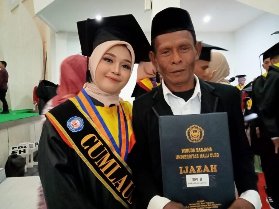 Kendari – Mahasiswi asal Kabupaten Muna, Sulawesi Tenggara (Sultra) bernama Riska Dian Safitri menjadi wisudawati terbaik Universitas Halu Oleo (UHO) Kendari periode Juli – Oktober 2022 gelombang kedua, Rabu (2/11/2022).