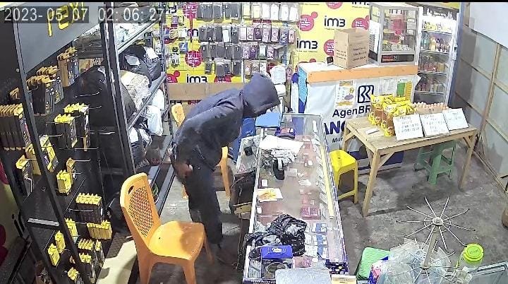 Gerak-gerik pelaku juga dicurigai oleh korban sebagai orang yang mengetahui keadaan dan kondisi di dalam konter tersebut. Dalam aksi pencurian itu, pelaku berhasil menggasak 2 unit HP dan membawa kabur uang tunai sebesar Rp8 juta lebih. Hingga kerugian ditaksir mencapai Rp13 juta lebih.
