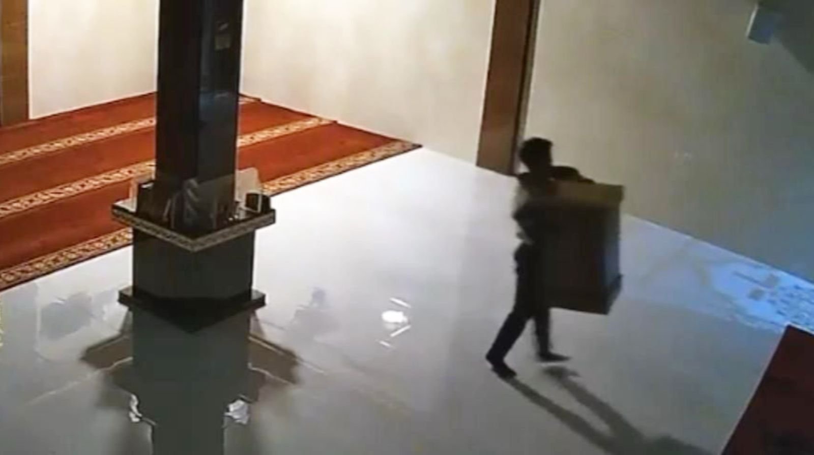 Pelaku tidak langsung membawa kabur kotak amal, tetapi lebih dahulu memastikan situasi dengan keluar mengecek situasi di halaman luar masjid. Merasa aman, pelaku langsung membawa kabur kotak amal berwarna coklat setinggi sekira 40 – 50 cm itu keluar dari area masjid.