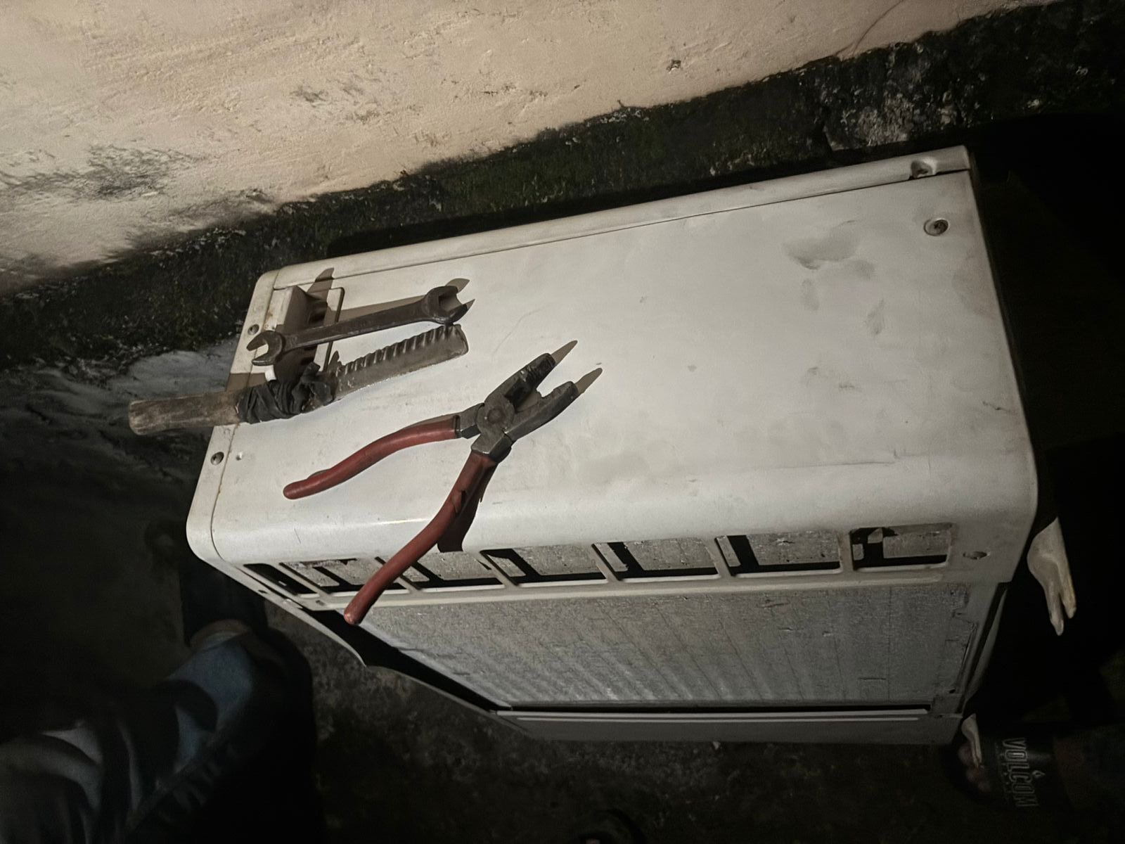 Selanjutnya, Mamam masuk ke pekarangan rumah dan melihat dua outdoor AC sudah dicopot dan berada di tanah. Ia menduga kuat, kedua pria tersebut berencana melakukan pencurian.