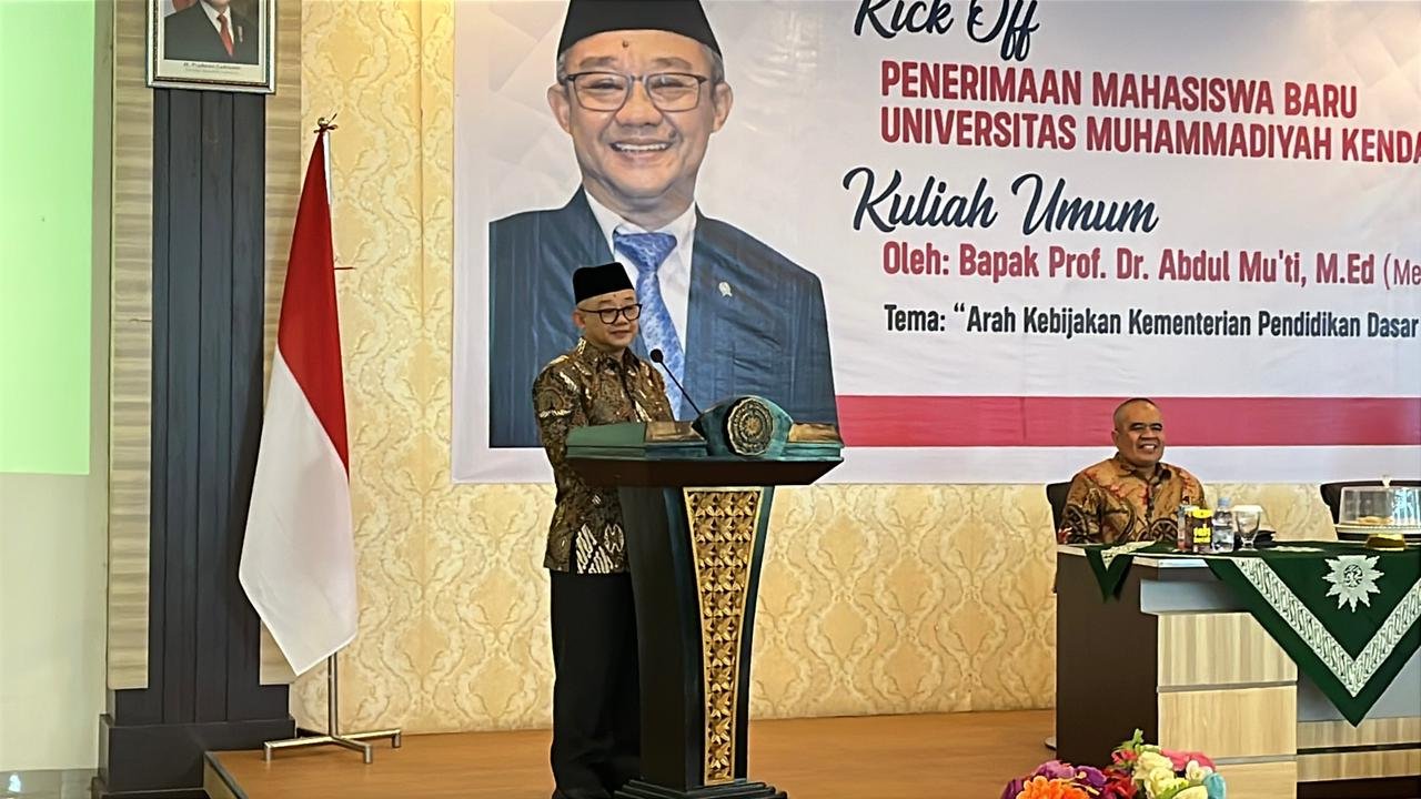 Menteri Pendidikan Dasar dan Menengah (Mendikdasmen), Abdul Mu’ti saat memberikan kuliah umum di UM Kendari. Foto: Hasmin Ladiga/Kendariinfo. (10/1/2026).