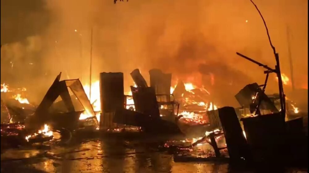 Kondisi 9 kios penjual BBM eceran di Kendari hangus terbakar. Foto: Kendariinfo. (15/3/2022).