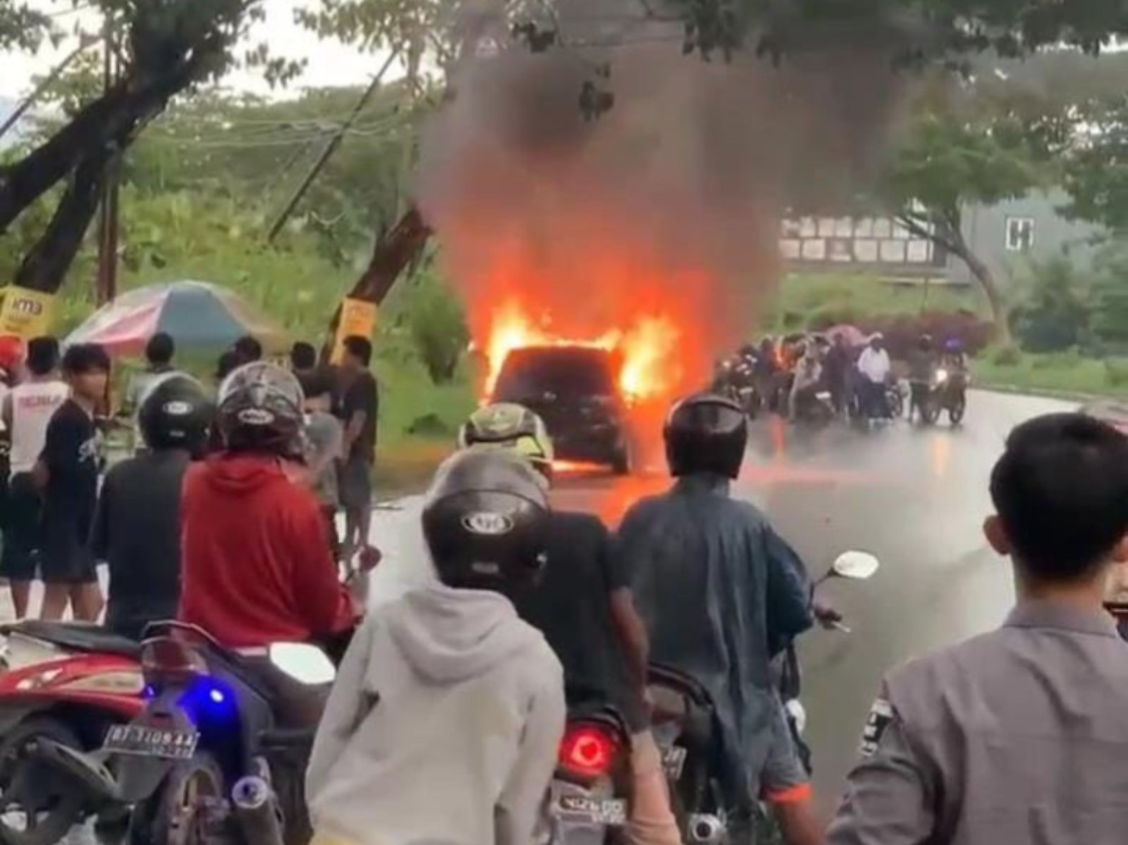 Detik-detik minibus terbakar di Kendari. Foto: Istimewa. (17/2/2025).