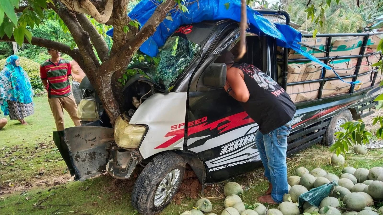 Mobil Pikap Pengangkut Melon Tabrak Pohon di Konawe
