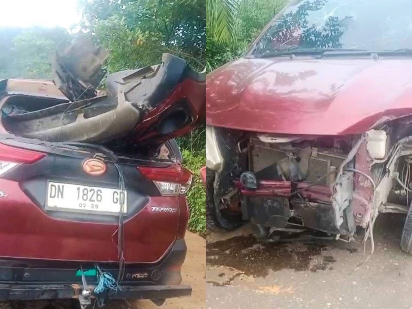 Sebuah mobil travel merek Daihatsu Terios dengan nomor pelat DN 1826 GD menabrak jembatan di Jalan Poros Desa Paka Indah, Kecamatan Oheo, Kabupaten Konawe Utara. Foto: Istimewa. (10/12/2025).