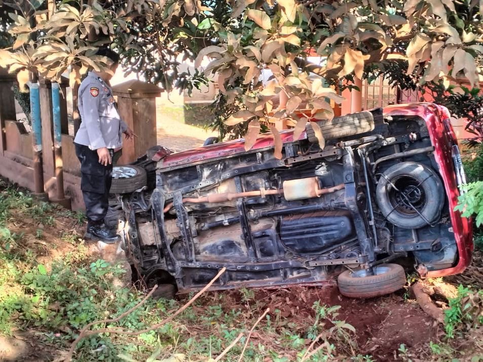 Namun, saat melintas di Desa Pelambua, mobil tersebut diduga hilang kendali. Mobil oleng ke arah kanan jalan dan menabrak pagar rumah warga hingga terbalik dalam posisi miring kanan.