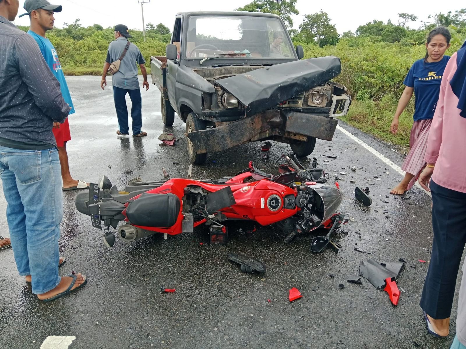 Dari informasi sementara yang dihimpun, peristiwa nahas itu terjadi di jalur lintas desa. Korban yang mengendarai sepeda motor luka parah hingga meninggal dunia setelah bertabrakan keras dengan mobil pikap. Akibat benturan hebat, motor korban hancur dan terselip di bawah bagian depan kendaraan pikap yang juga mengalami kerusakan serius.