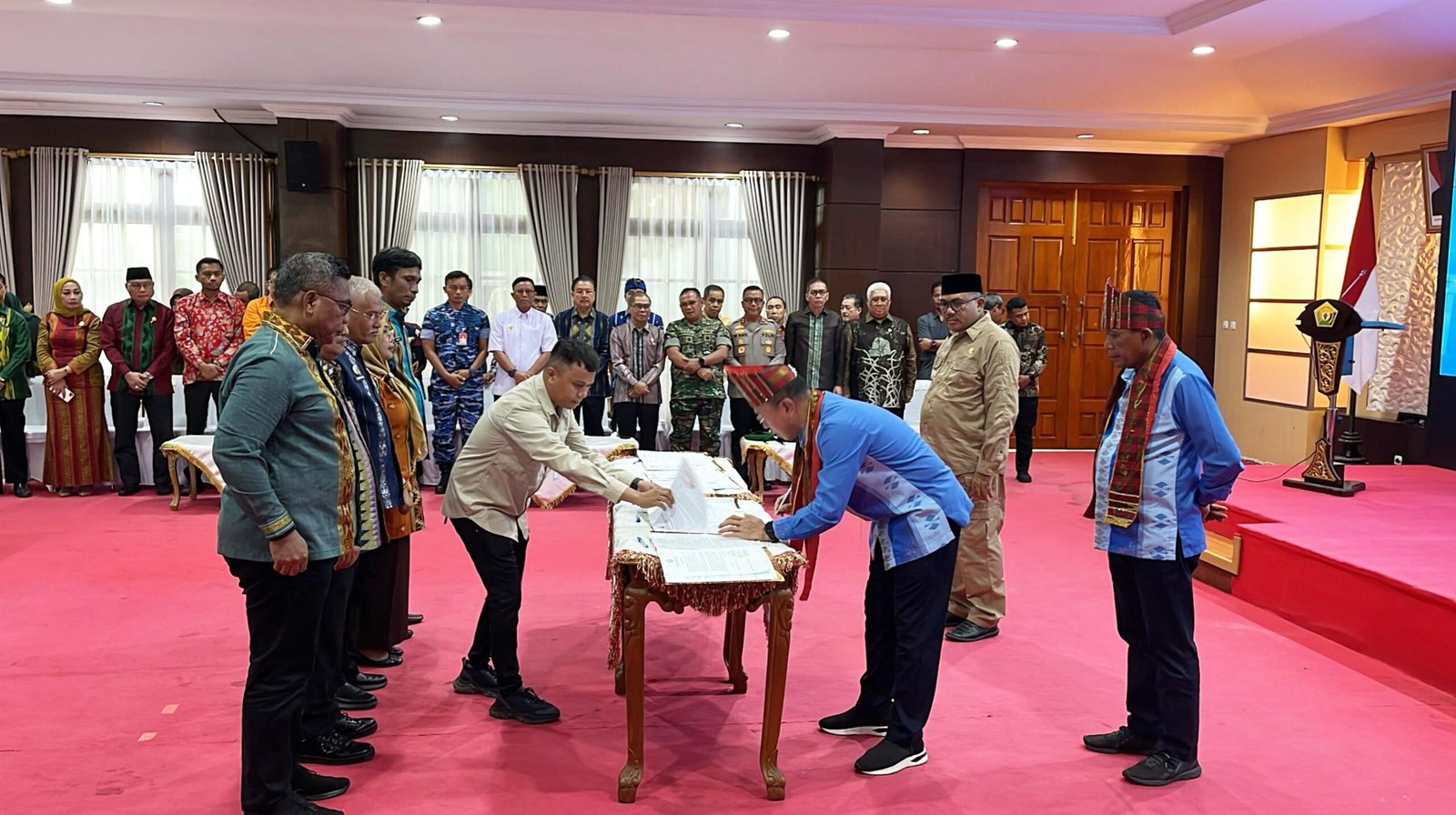 Kendari – Gubernur Sulawesi Tenggara (Sultra), Andi Sumangerukka (ASR) langsung menandatangani pakta integritas dan perjanjian kerja bersama para Kepala Organisasi Perangkat Daerah (OPD) lingkup Pemerintah Provinsi (Pemprov) Sultra di Aula Merah Putih, Rumah Jabatan (Rujab) Gubernur Sultra, Sabtu (1/3/2025).
