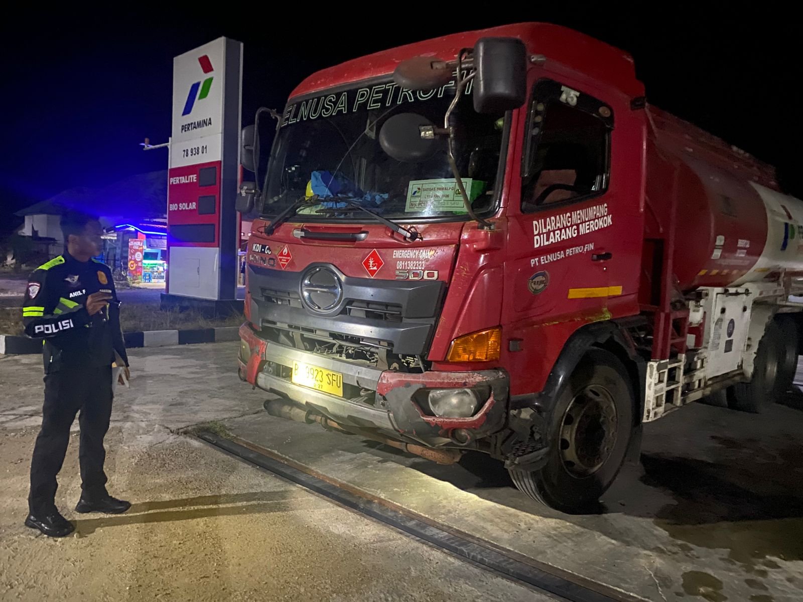 Ia menjelaskan, truk tangki warna merah putih yang dikemudikan Herman saat itu melaju dari arah Kendari menuju Kolono Timur. Sementara motor yang dikendarai Nana Wijaya bersama Edy Sanjaya datang dari arah berlawanan.