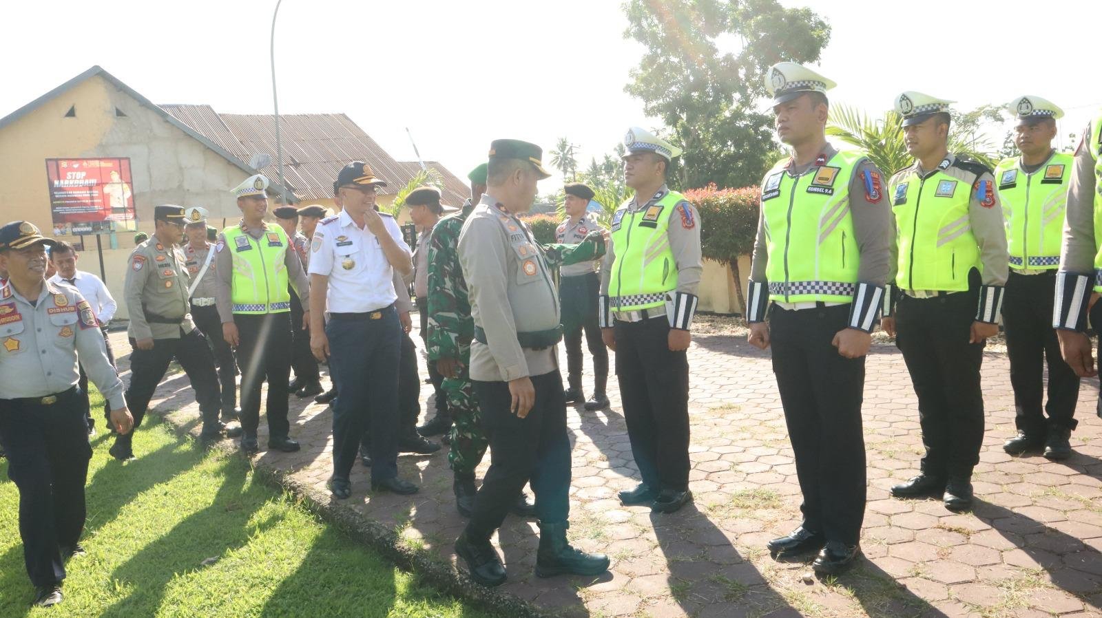 Wakapolres Konawe Selatan (Konsel), Kompol Fitrayadi saat melakukan pengecekan pasukan dan peralatan pendukung Operasi Keselamatan Anoa 2026.