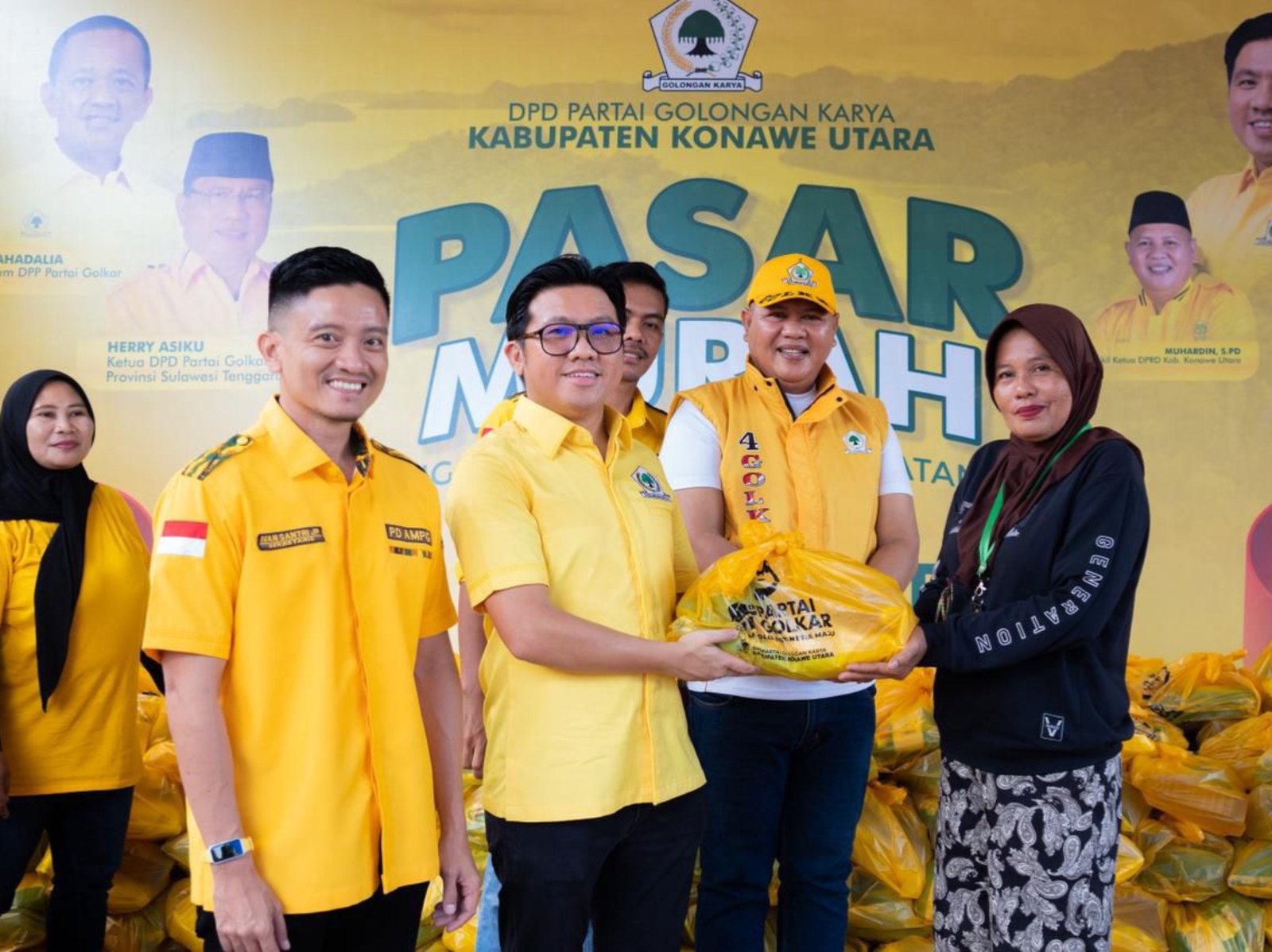 Pasar murah ini sekaligus sebagai rangkaian peringatan Hari Ulang Tahun (HUT) ke-61 Partai Golkar yang diadakan di depan Toko Dona Jaya, Desa Mataiwoi, Kecamatan Andowia, Konut.