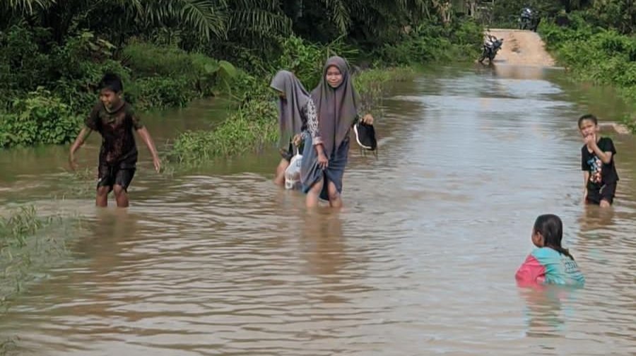 “Kalau keluar dari jalan itu memang sudah aspal. Jadi sudah sekitar lima tahun belum pernah diperbaiki ini jalan. Kadang kami tidak ke sekolah akibat banjir,” jelasnya.