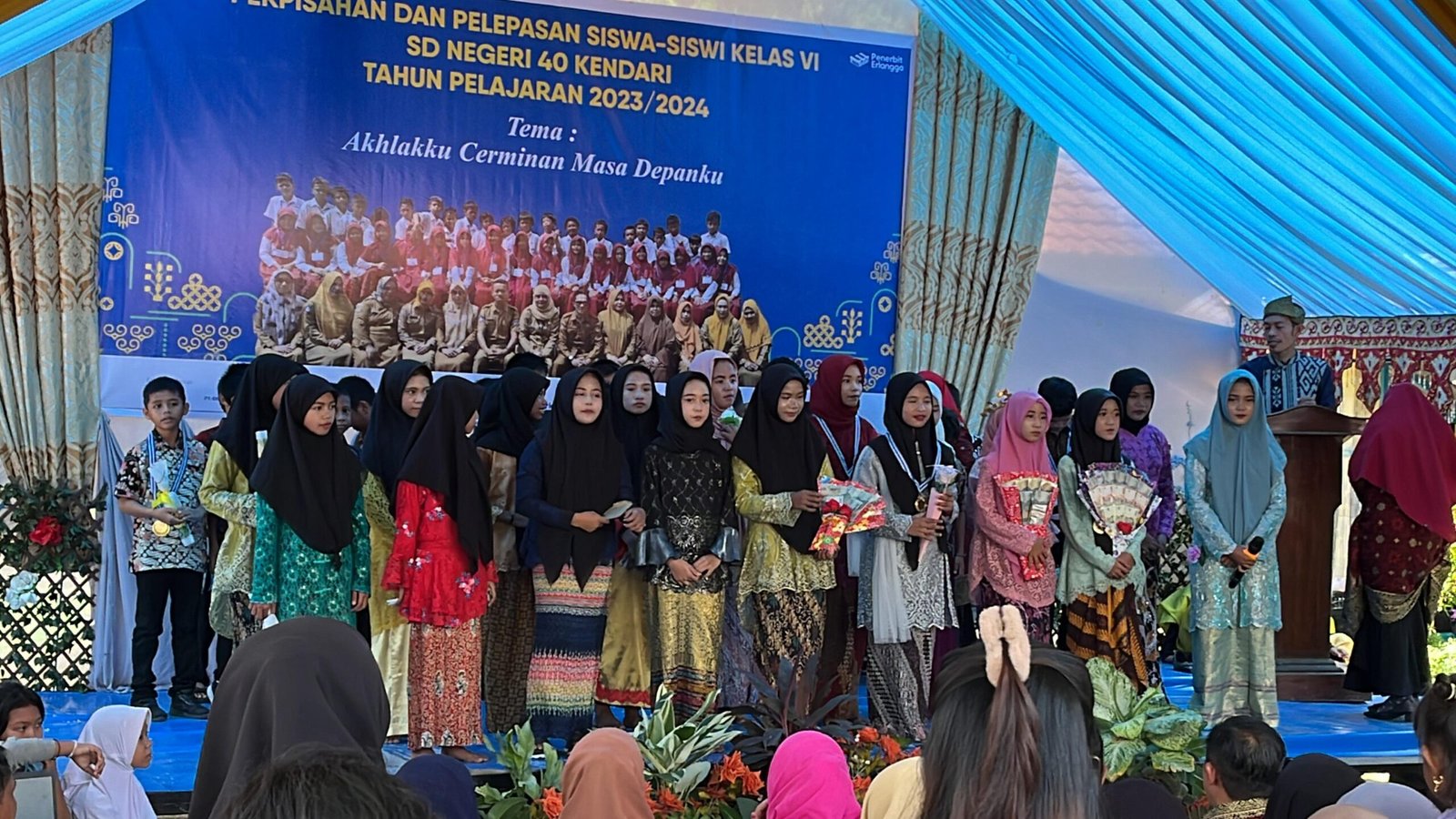 Hal tersebut diumumkan secara langsung oleh Kepala Sekolah SDN 40 Kendari, Supriadi S. pada acara Perpisahan dan Pelepasan Siswa-Siswi Kelas VI SDN 40 Kendari Tahun Ajaran 2023/2024 di Halaman SDN 40 Kendari, Sabtu (15/6/2024).