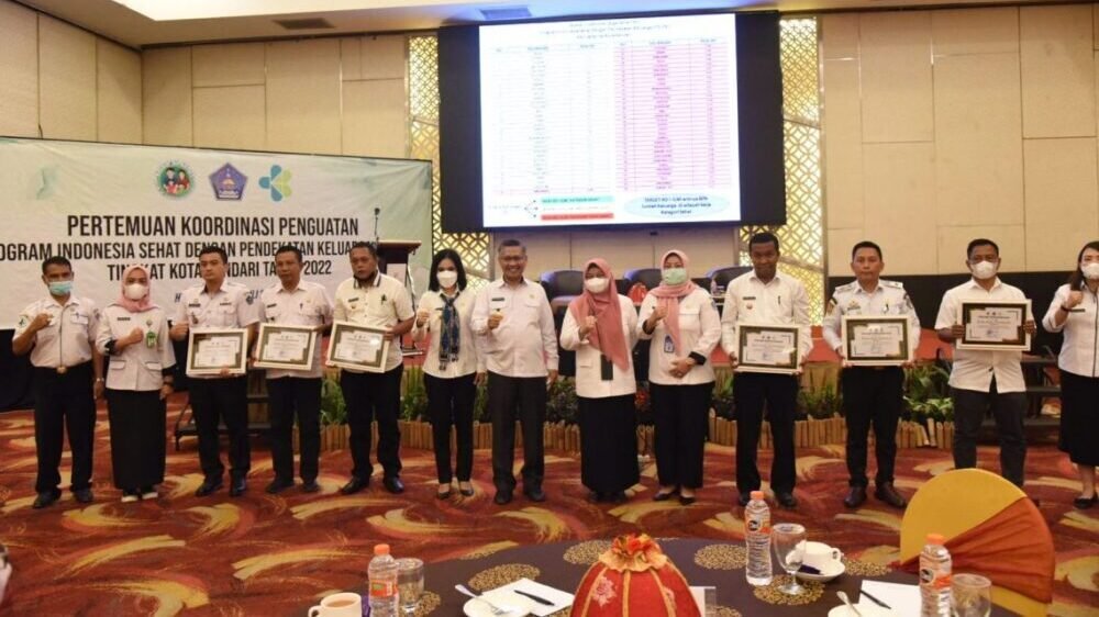 Kendari – Pemerintah Kota (Pemkot) Kendari memberikan penghargaan pada enam kelurahan yang meraih Indeks Keluarga Sehat (IKS), dalam kegiatan Rapat Koordinasi Penguatan Program Indonesia Sehat dengan Pendekatan Keluarga (PIS-PK), yang dilaksanakan Dinas Kesehatan (Dinkes) Kota Kendari pada Rabu (20/7/2022).