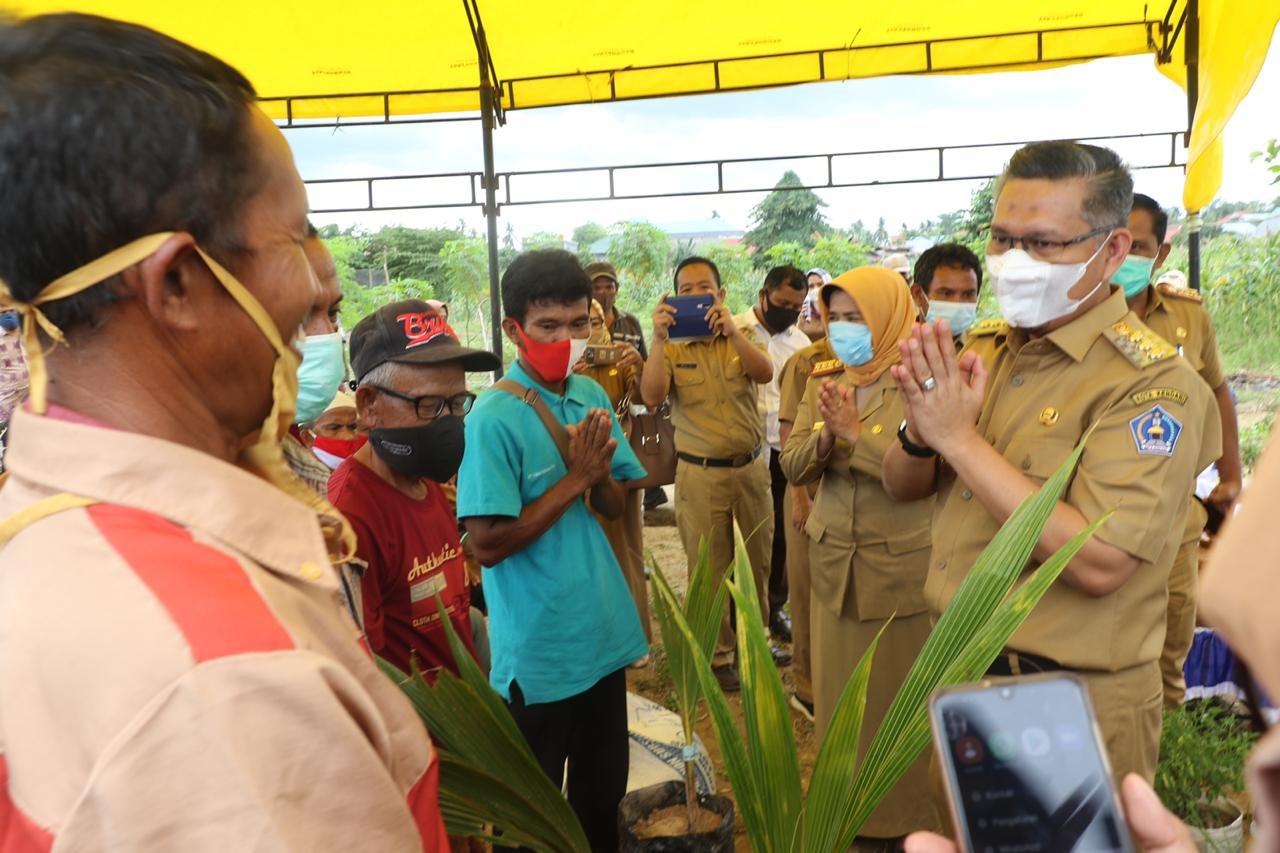 Kendari – Wali Kota Kendari, Sulkarnain Kadir menyerahkan bantuan berupa pupuk hayati cair sebanyak 1.560 liter serta 380 bibit Kelapa Genjah kepada Kelompok Tani (Poktan) Kelurahan Wundumbatu, Kecamatan Poasia, Senin (21/12/2020).