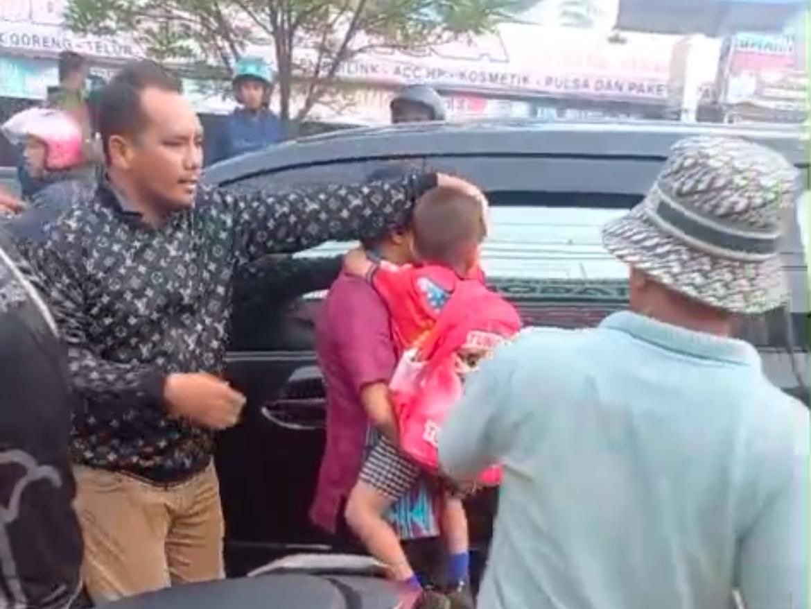 “Eh anaknya kasihan, jangan, jangan,” teriak seorang warga dalam video yang beredar.