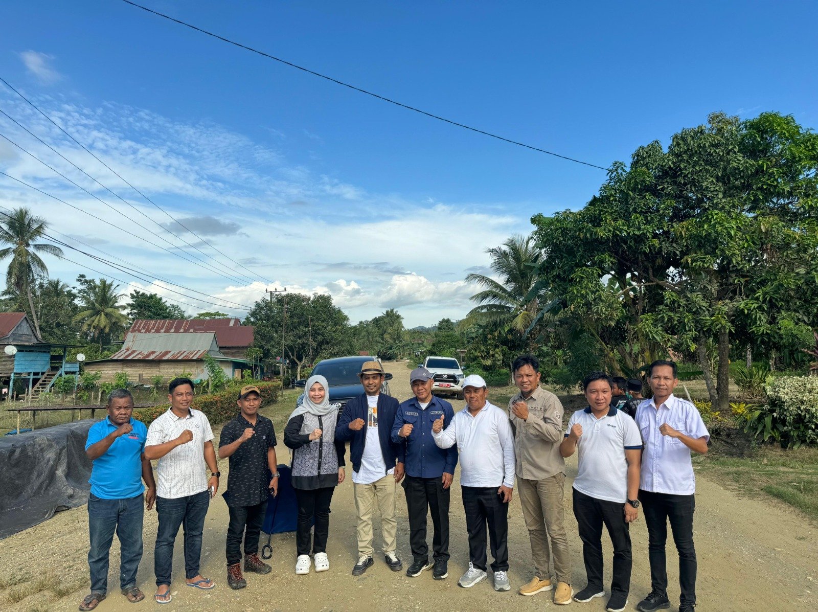 Pemprov Sultra bersama Pemda Koltim dan anggota DPRD Sultra, Hartini Azis saat melakukan peninjauan lokasi pengaspalan di Kecamatan Polipolia - Lambandia. Foto: Istimewa. (21/5/2025).