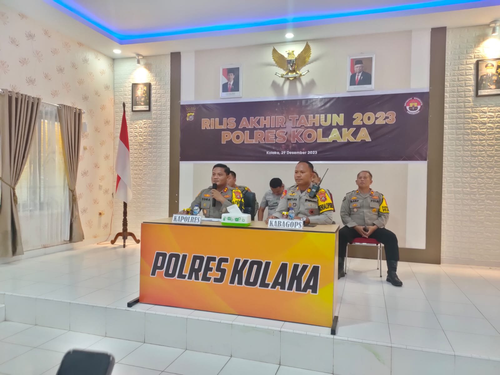 Konferensi pers rilis capaian kasus tindak pidana tahun 2023 di Polres Kolaka. Foto: Hasbir/Kendariinfo. (29/12/2023).