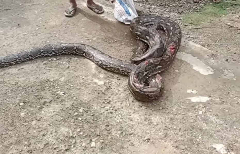 Ular piton berukuran 6,5 meter dilumpuhkan usai menyerang perempuan di Desa Maligano, Kecamatan Maligano, Kabupaten Muna, Sulawesi Tenggara (Sultra). Foto: Istimewa. (17/2/2026).