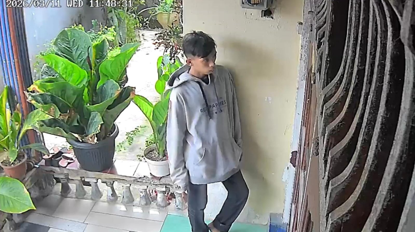 Rekaman CCTV itu menampilkan dirinya yang tengah memantau situasi. Ia memerhatikan aktivitas pemilik rumah dan memeriksa bagian belakang untuk memastikan situasi telah aman sebelum melancarkan aksinya.