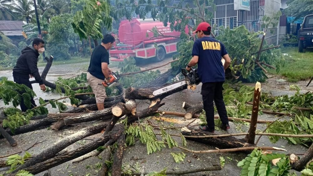 Pohon Tumbang Tutupi Jalan di Bombana, Satpol PP dan Damkar Bantu Bersihkan
