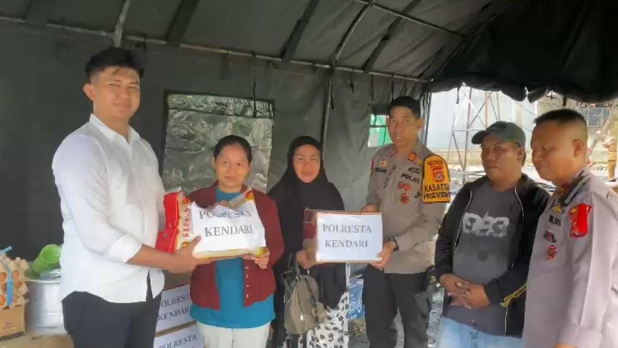 Dalam kegiatan itu juga, Polresta Kendari menyalurkan sejumlah bantuan berupa 20 dus air mineral, 10 dus mi instan, 5 karung beras, 2 dus minyak goreng, 5 papan telur, serta berbagai peralatan memasak, kompor gas, dan peralatan makan lainnya.
