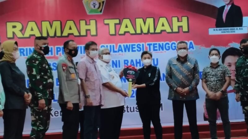 Kendari – Pemerintah Provinsi (Pemprov) Sulawesi Tenggara (Sultra) memberikan satu unit mobil merek Toyota Inova kepada atlet bulu tangkis, peraih medali emas di ajang Olimpiade Tokyo 2020, Apriyani Rahayu.