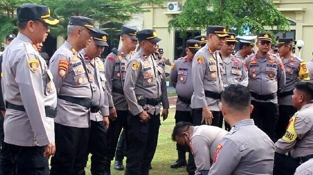 Kapolresta Kendari, Kombes Pol Aris Tri Yunarko saat mengecek kesiapan anggota dalam pengamanan Pemilu 2024. Foto: Herlis Ode Mainuru/Kendariinfo. (6/2/2024).