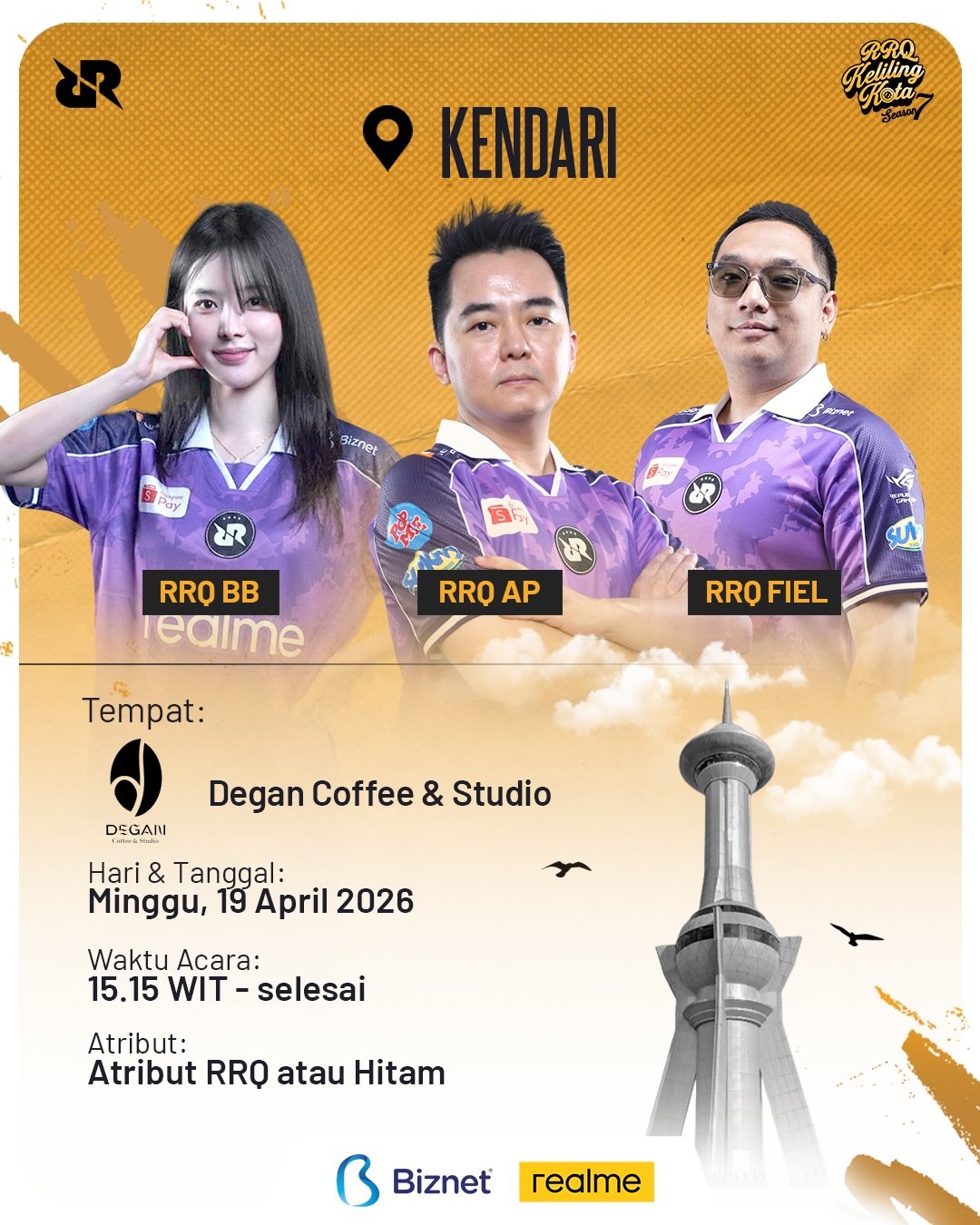 Kendari – Rex Regum Qeon (RRQ) Keliling Kota Season 7 akan menyambangi Kota Kendari, Sulawesi Tenggara (Sultra), pada Minggu (19/4/2026) pukul 15.15 Wita. Kegiatan tersebut akan dihadiri oleh Chief Executive Officer (CEO) RRQ, Andrian Pauline, bersama Brand Ambassador dan talent RRQ, yakni BB dan Fiel.