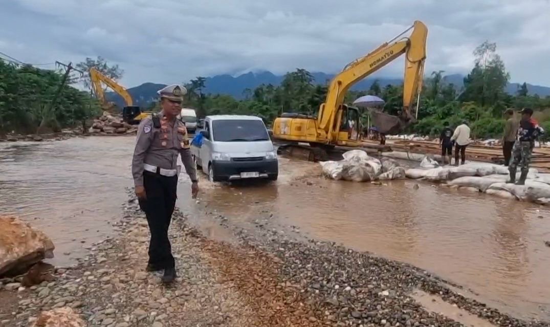 “Alat berat sedang mengerjakan jembatan. Dan teman-teman kepolisian ada terus di lokasi membantu masyarakat,” tutupnya.