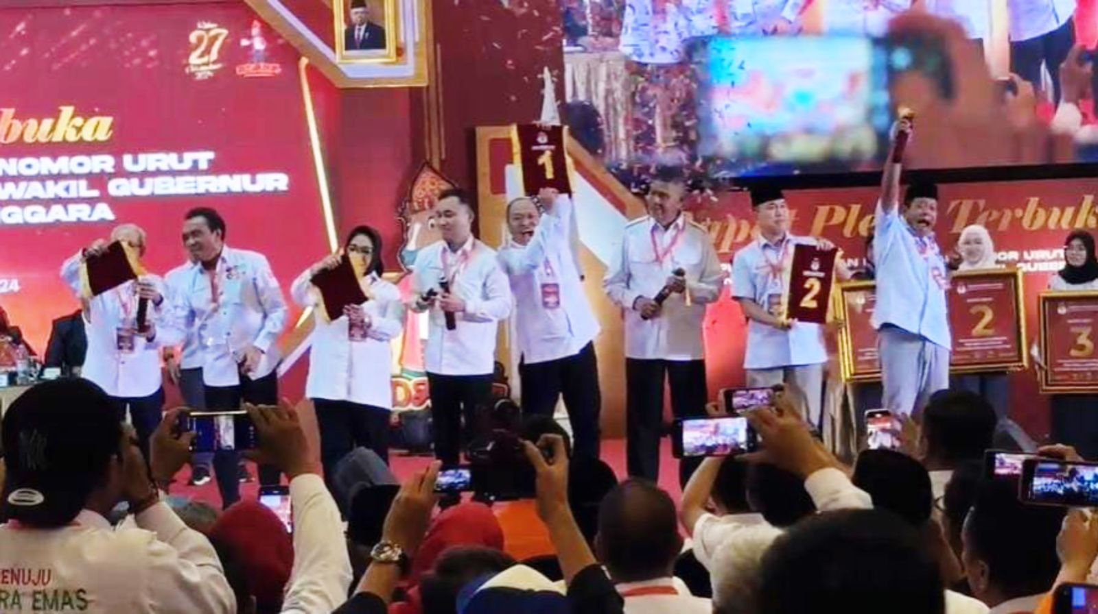 Kendari – Pasangan Calon Gubernur Sulawesi Tenggara (Sultra) dan Wakil Gubernur, Ruksamin-Sjafei Kahar mendapatkan nomor 1 dalam pengundian nomor urut Pilgub Sultra yang digelar Komisi Pemilihan Umum (KPU) di Claro Hotel Kendari, Senin (23/9/2024) malam.