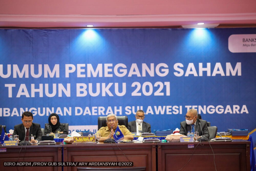 Hal tersebut disampaikan Ali Mazi saat memimpin Rapat Umum Pemegang Saham (RUPS) PT. Bank Pembangunan Daerah Sulawesi Tenggara (Bank Sultra) Tahun Buku 2021, yang dilaksanakan di Aula Merah Putih Rujab Gubernur Sultra, Selasa (14/6/2022).